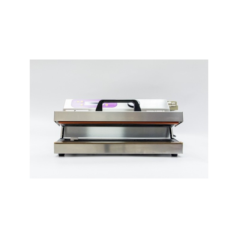 Hochwertige Vakuummaschine aus Edelstahl, ideal für Haushalte und kleine Lebensmittelverarbeitungsbetriebe. Automatische und manuelle Steuerung, LCD-Display und externer Filter.