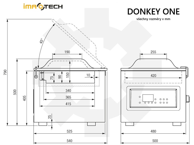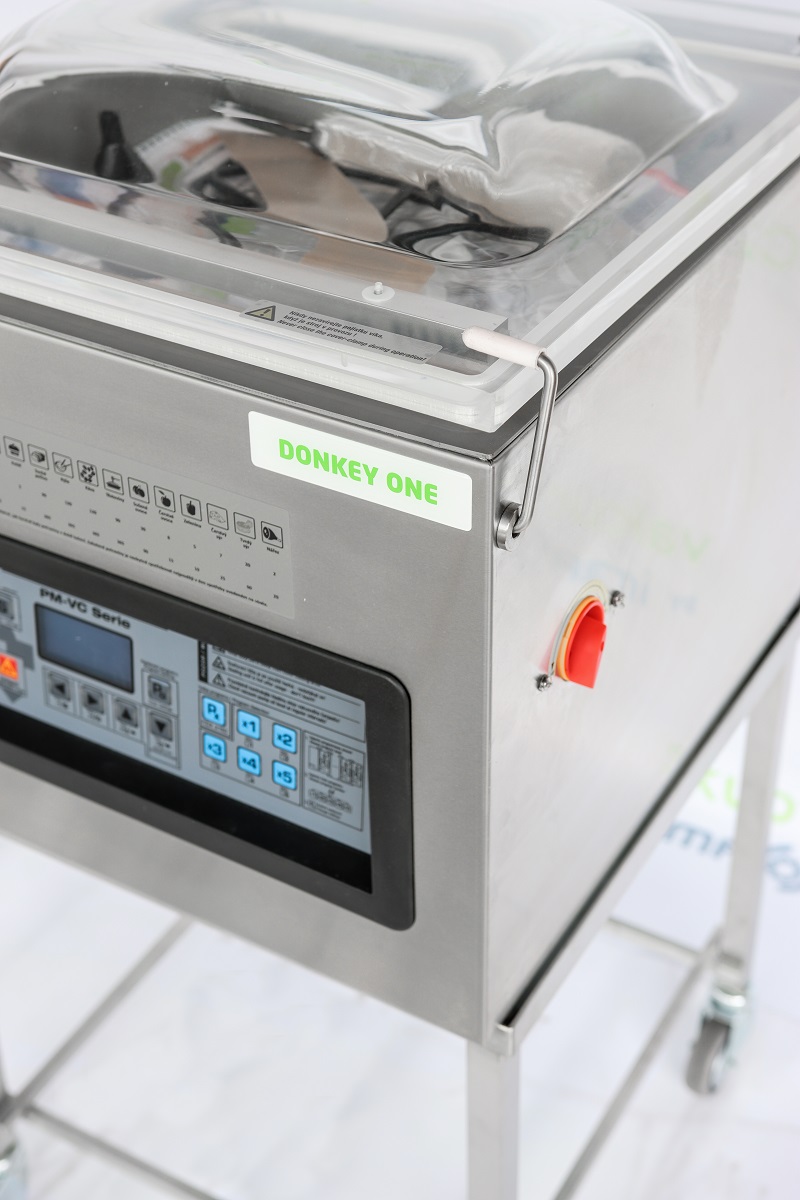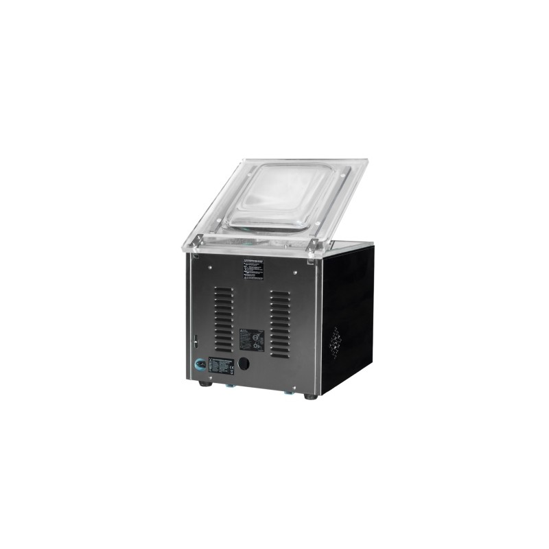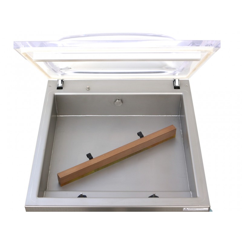 Der Verpacker verfügt über 1 Schweißbalken, wobei es möglich ist, größere Kammern für das Vakuumieren größerer Produkte zu verwenden.