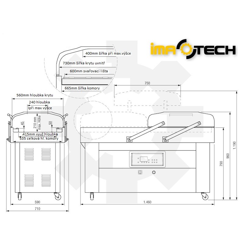 Nutzbare Fläche der Kammer (B x T) 665 x 415 mm (siehe Abbildung)