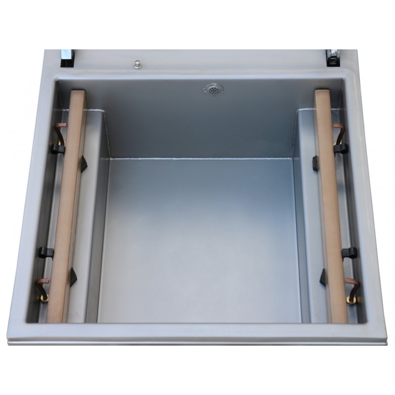 Einfach zu bedienender Vakuumverpacker mit Edelstahlgehäuse, einer speziellen Tiefkammer und einem Gasanschluss.