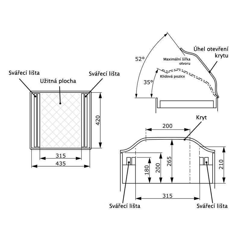 Nutzbare Kammergröße:315 x 420 x 210/265 mm